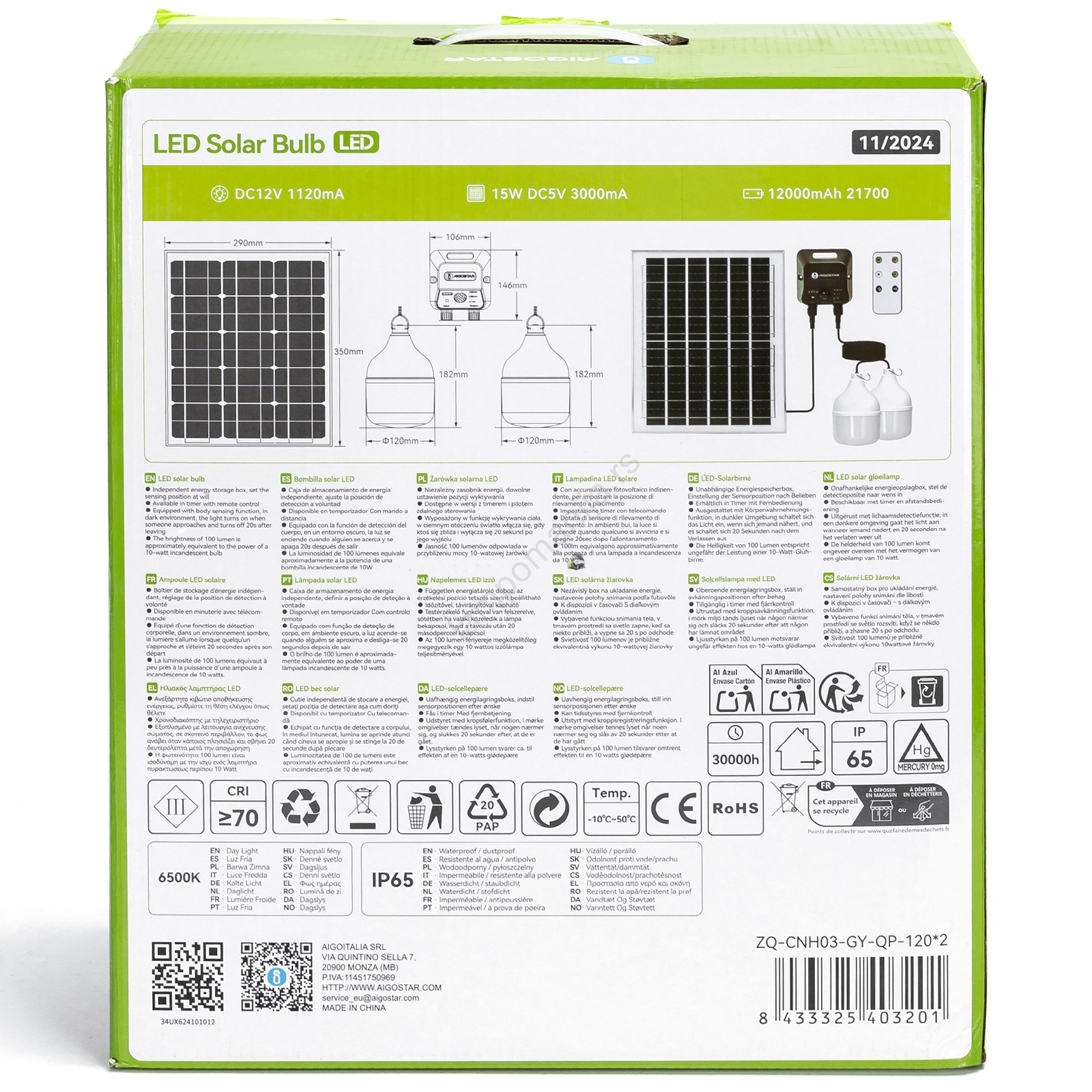 • Aigostar - LED solarni luster 2xLED/70W/12V 12000 mAh 6500K prečnika 12 cm + sa daljinskim upravljačem