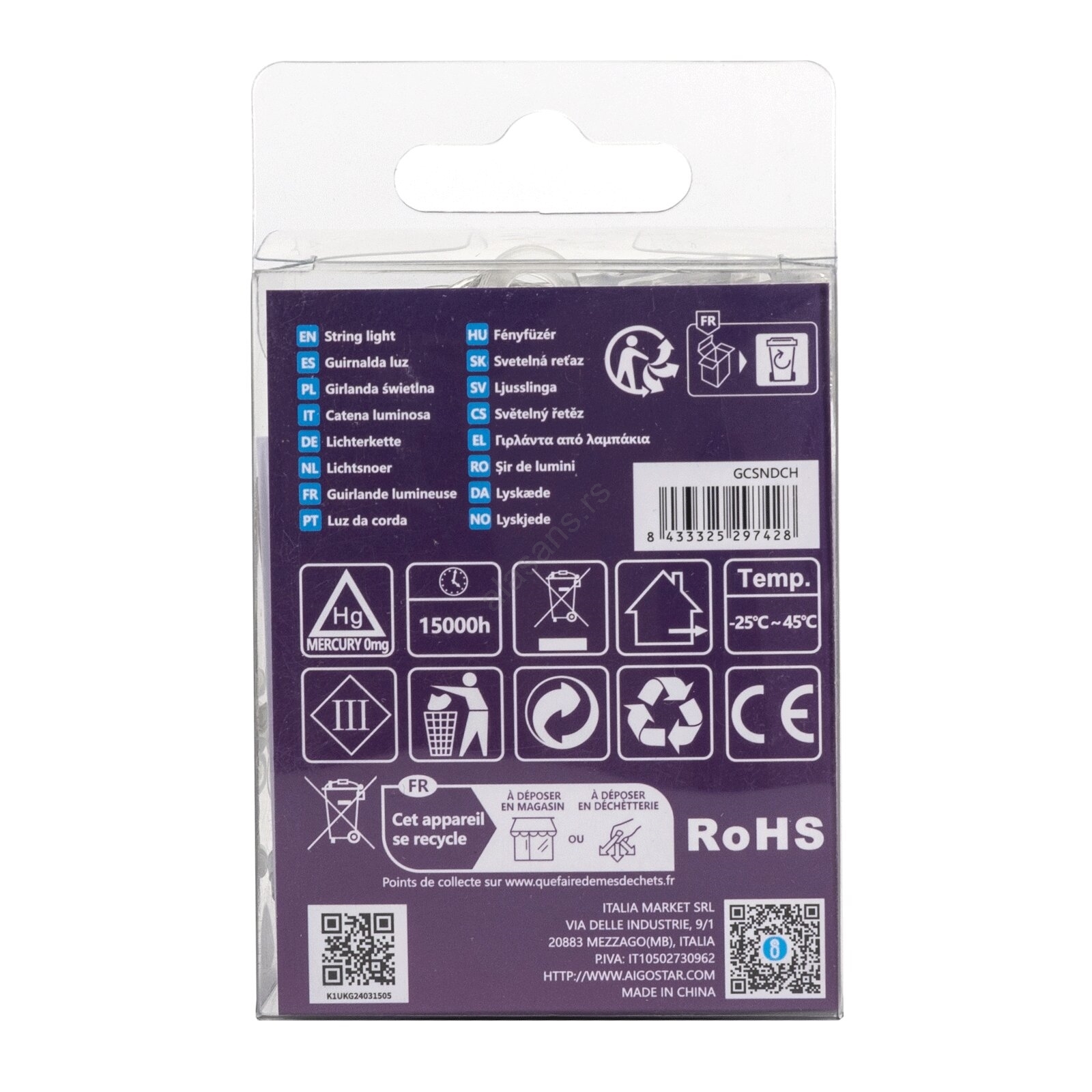 Aigostar -LED spoljni božićni niz 50xLED/8 funkcija 3xAA 5,3m IP44 hladno bela | Lampomanija