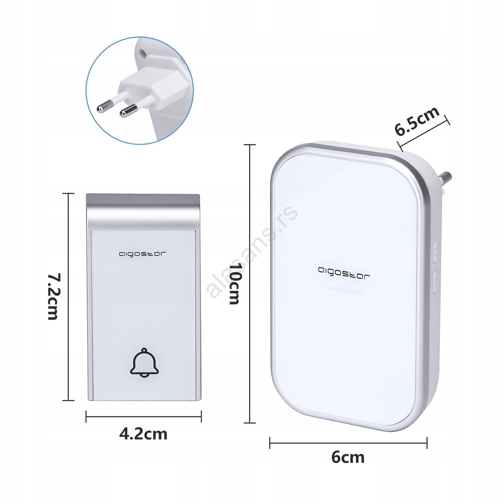Aigostar - KOMPLET 2x bežična zvona za utičnicu 230V IP44, bela | Lampomanija