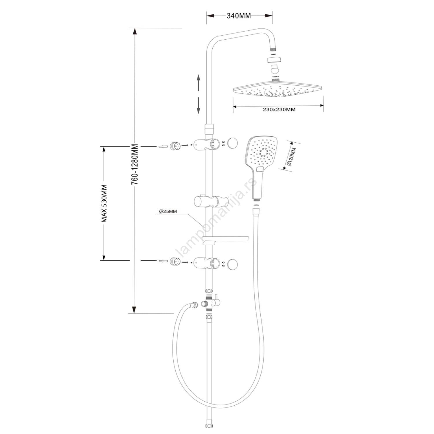 • Tuš kolona je izrađena od nerđajućeg čelika.