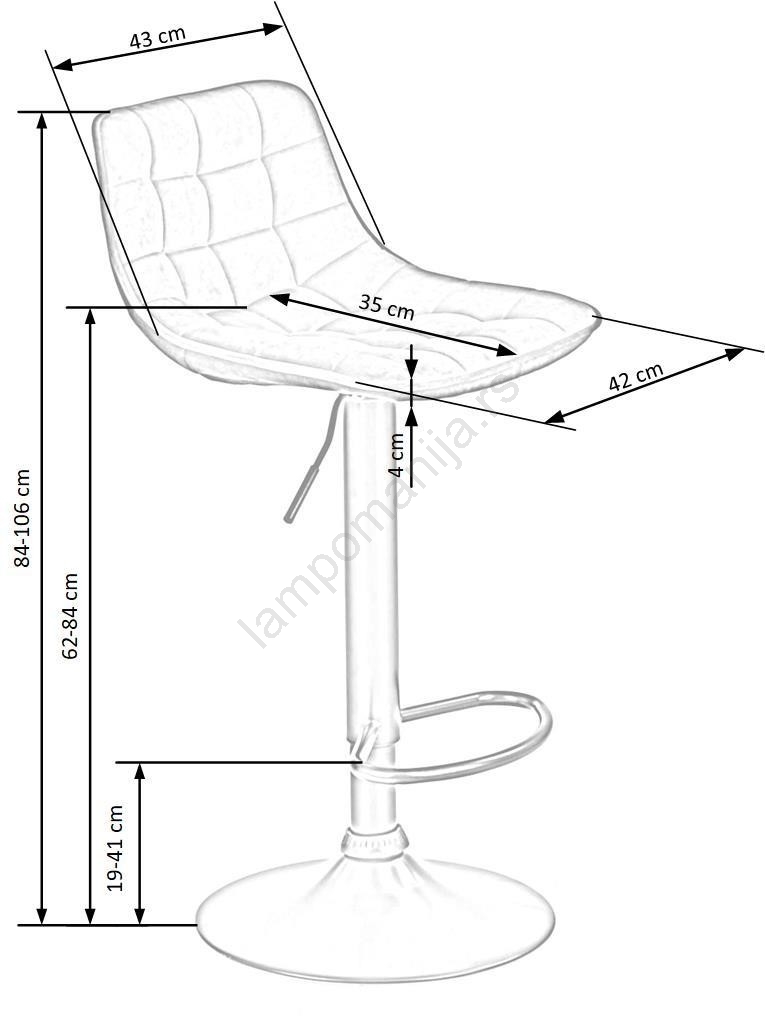 • Visina sedišta: 62 - 84 cm.