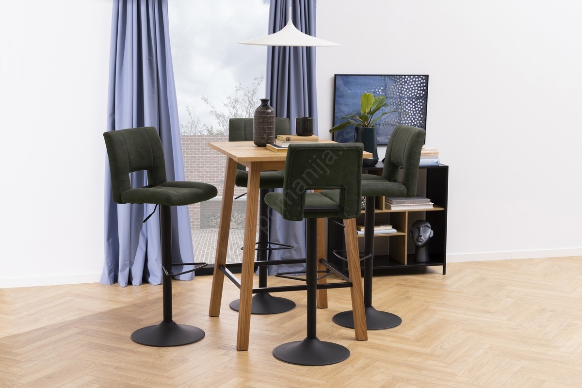 • Klasična silueta, tapacirano sedište, udobno naslonjalo i robusna baza - barska stolica ima sve.