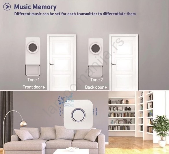 • Velika prednost zvona je pamćenje podešene melodije i glasnoće čak i nakon vađenja baterija iz prijemnika.