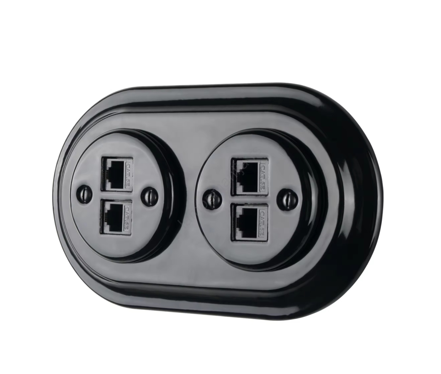 • Bohemia-Design - Porcelanska retro Ethernet utičnica sa okvirom 2xCAT.5E crna