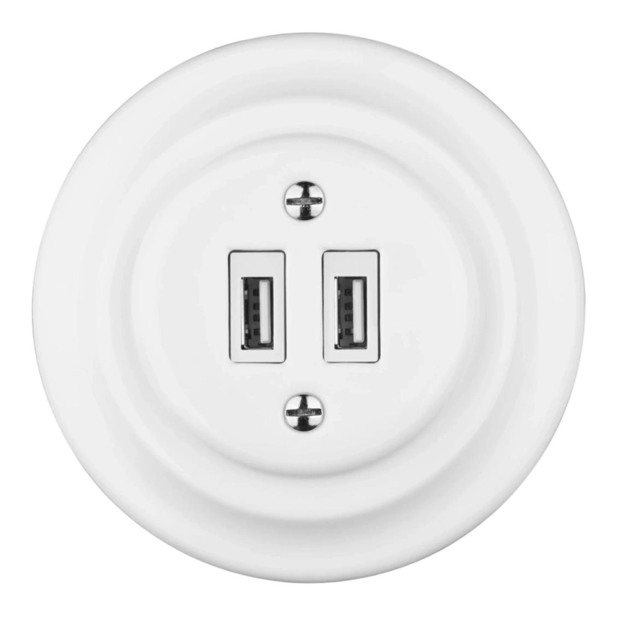 Bohemia-Design - Porcelanska retro USB utičnica za napajanje sa ramom, 2x USB-A, bela | Lampomanija