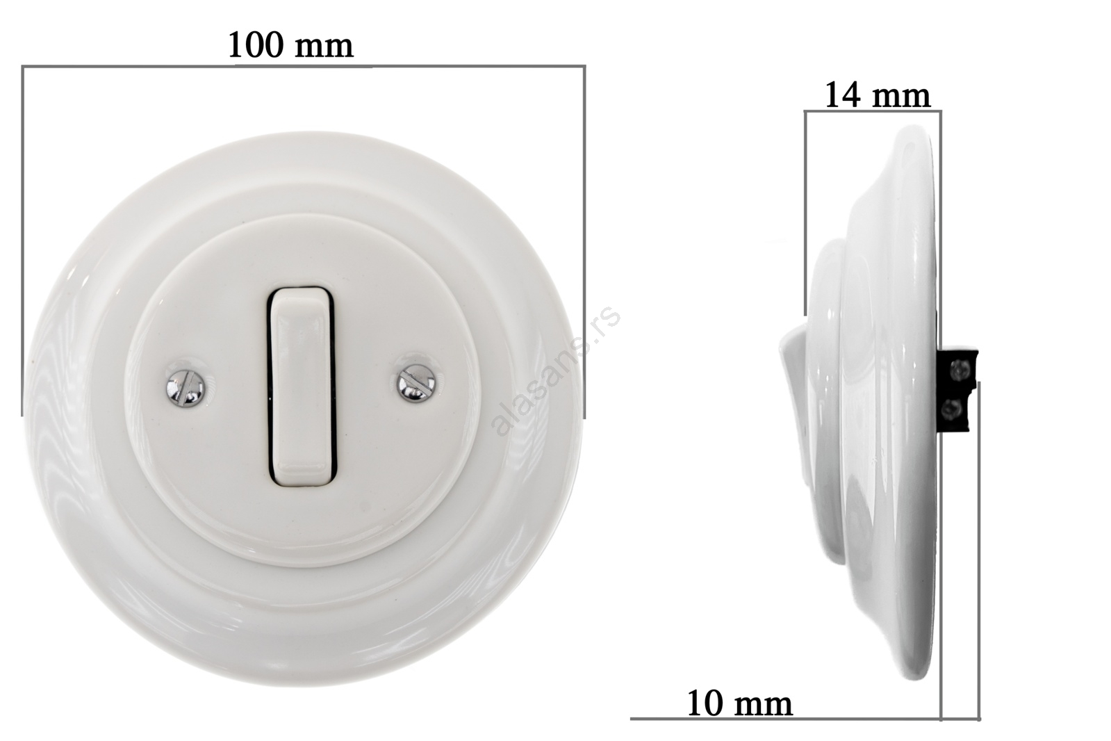 Bohemia-Design - Porcelanski retro jednostruki prekidač sa ramom br. 6, beo | Lampomanija