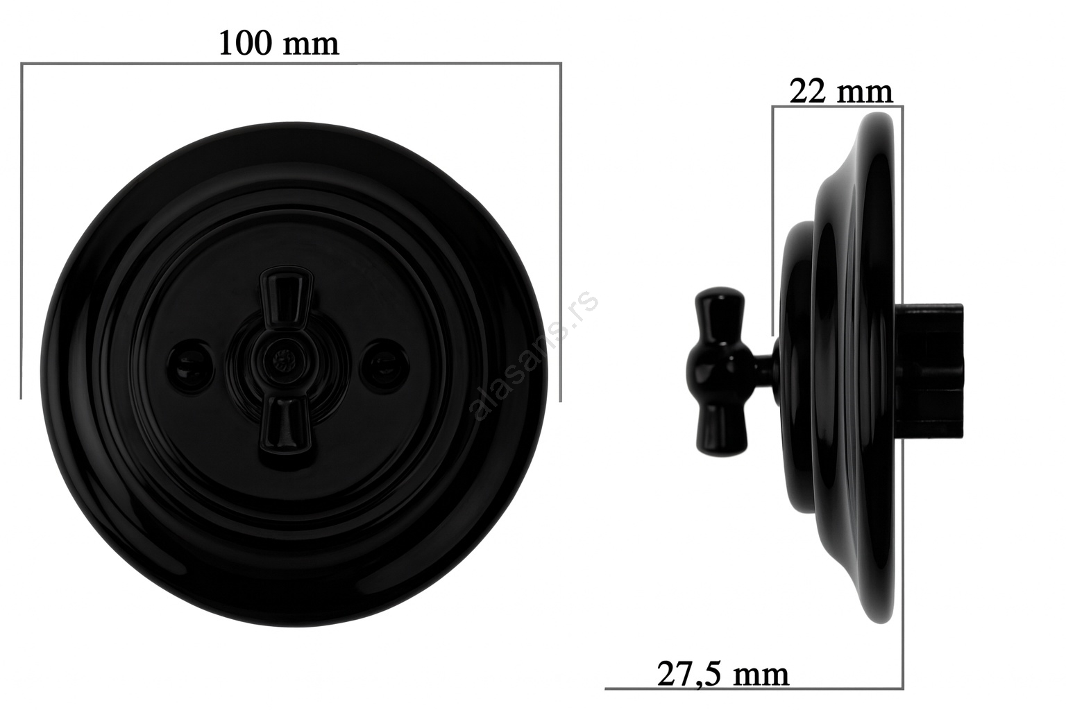 • Bohemia-Design - Porcelanski retro rotacioni prekidač sa okvirom br. 7, crne boje