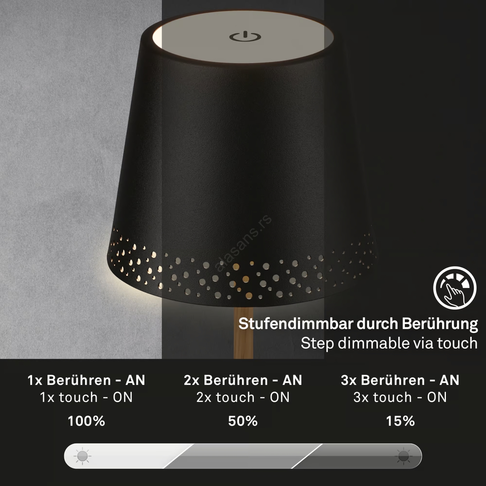 Brilo - LED punjiva stona lampa na dodir KIKI LED/2,6W/5V IP44 2600 mAh crna | Lampomanija