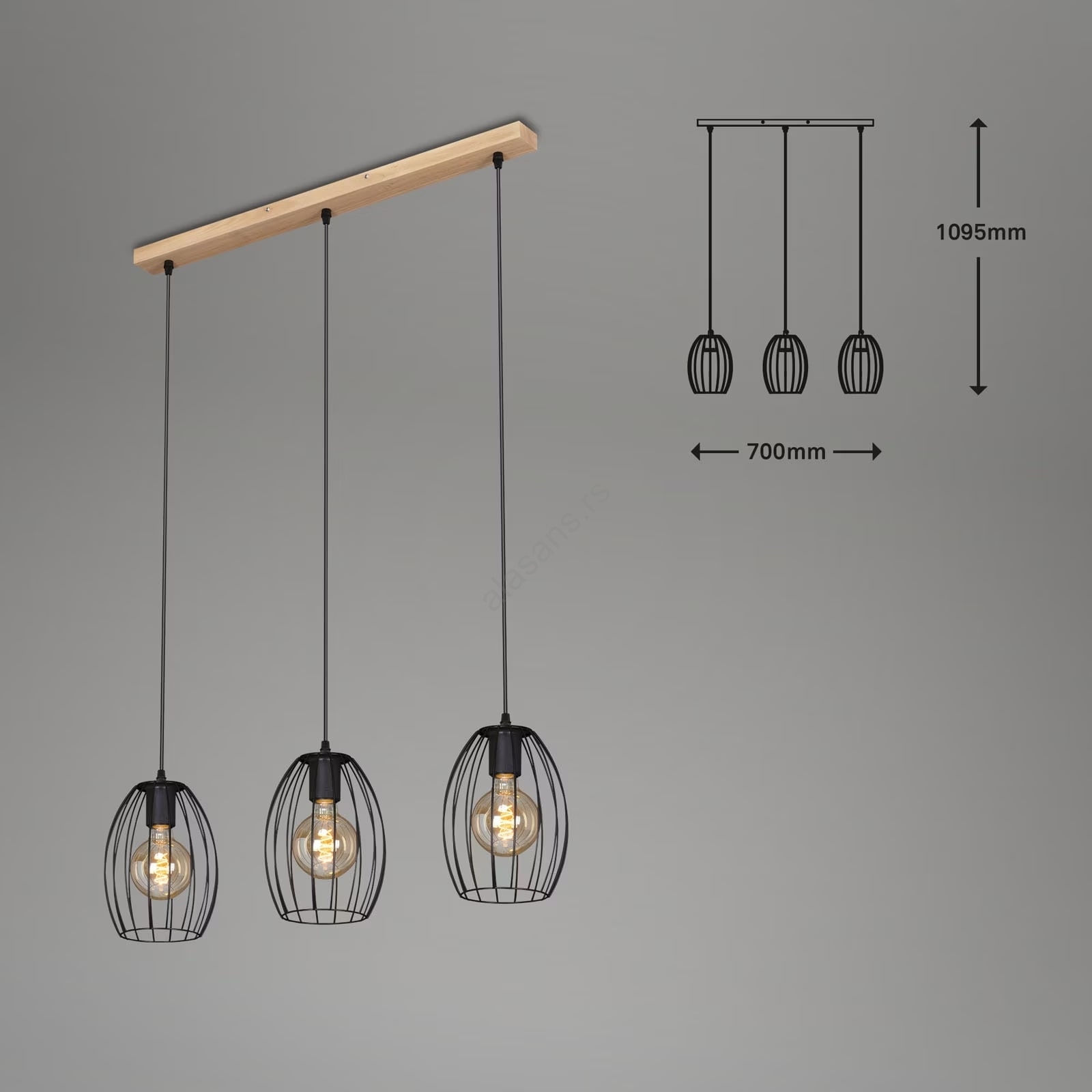Brilo - Luster na lanku WAKTU 3xE27/60W/230V kaučukovo drvo