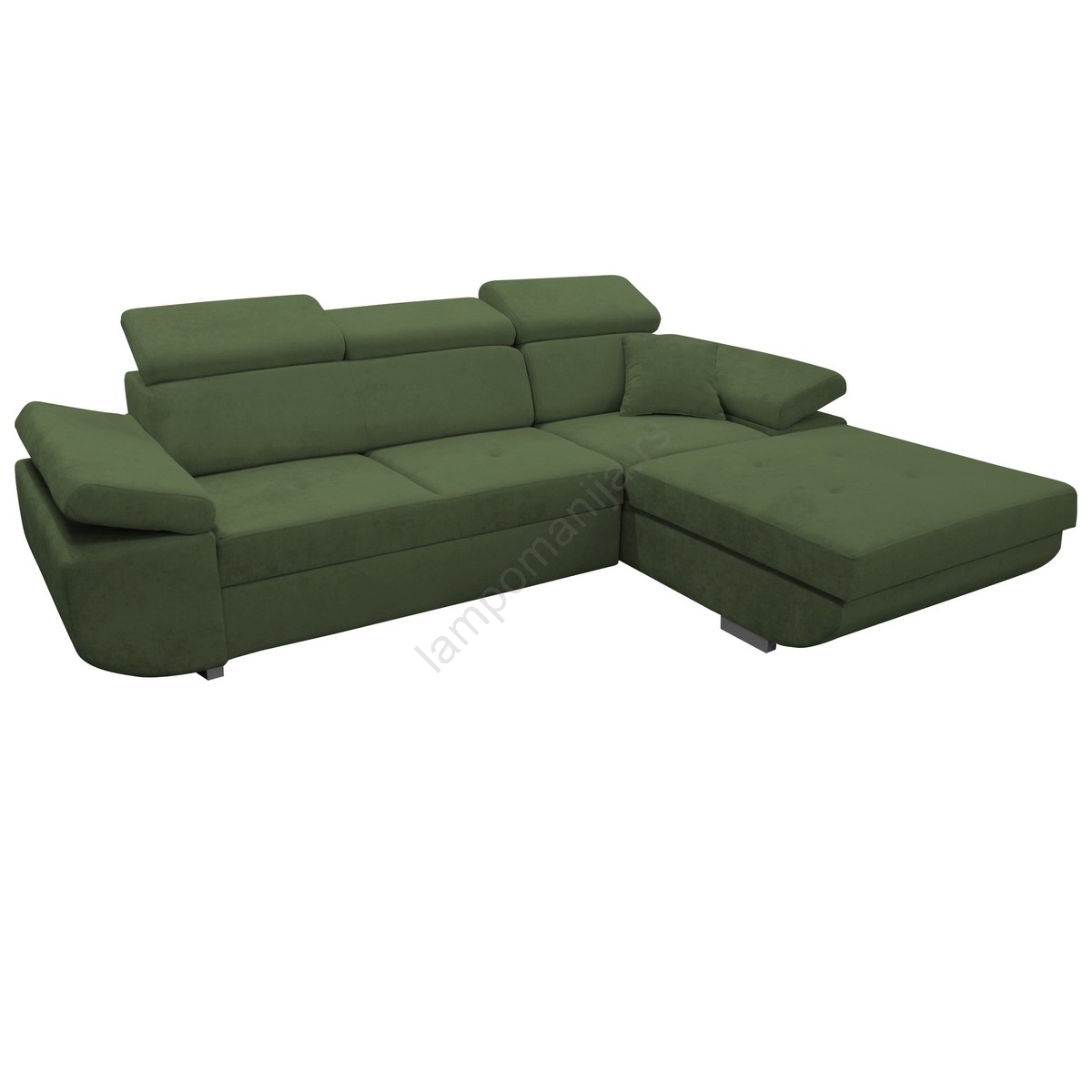 Razvlačna ugaona garnitura CASTELO u obliku L, desna, zelena, sa prostorom za odlaganje
