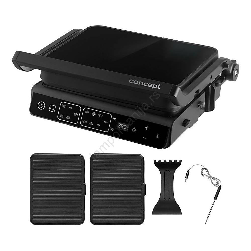 Concept ge3600 - Kontaktni gril s temperaturnom sondom GLASS 2000W/230V crna