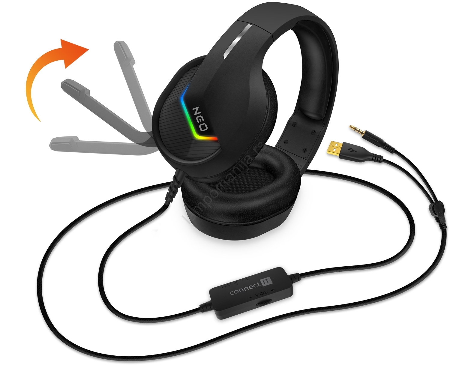 • Profesionalne gejmerske slušalice NEO sa sklopivim mikrofonom i osvetljenjem, namenjene igračima računarskih igara.