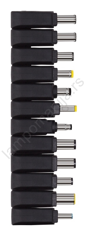 • 5) Spoljna/unutrašnja veličina: 5,5/2,5 mm za NEC (19 V/3,16 A), Lite-On (19 V/3,16 A; 19 V/3,42 A; 19 V/3,95 A; 19 V/4,74 A), Delta (19 V/3,42 A; 19 V/4,74 A; 19 V/4,47 A), Toshiba (19 V/3,42 A; 19 V/3,16 A; 19 V/4,74 A; 19 V/3,95 A), Acer (19 V/3,16 A; 19 V/3,42 A; 19 V/4,74 A), ASUS (19 V/3,42 A; 19 V/4,74 A), Dell (19 V/3,16 A), LS (20 V/3,25 A; 20 V/4,5 A), Gateway (19 V/3,16 A; 19 V/3,68 A; 19 V/4,74 A), Lenovo (19 V/3,42 A; 19 V/3,16 A; 19 V/4,2 A), IBM (19 V/4,2 A), Fujitsu (19 V/3,16 A; 19 V/4,22 A), HP (19 V/1,1 A; 19 V/3,16 A; 19 V/3,42 A; 18,5 V/4,9 A; 19 V/4,74 A; 19 V/3,95 A), Compaq (19 V/1,1 A; 19 V/3,16 A; 19 V/3,42 A; 19 V/4,8 A; 19 V/4,9 A; 19 V/4,74 A; 18,5 V/4,9 A).