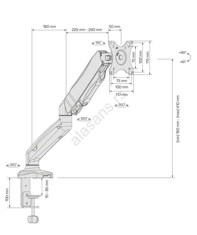 • Specijalni sistem opružnog paralelograma omogućava nezavisno podešavanje monitora u bilo koji položaj bez upotrebe alata i bez zatezanja (dovoljno je ručno promeniti položaj monitora i zahvaljujući specijalnoj opruzi unutar nosača on će se sam fiksirati u toj poziciji).