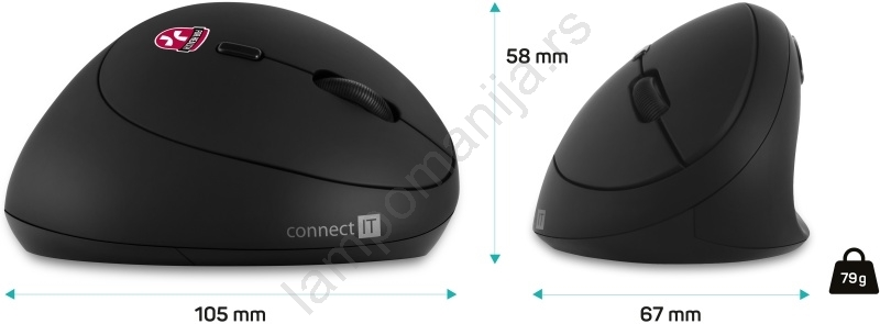 CONNECT IT CMO-2600-BK - Ergonomski bežični miš 800/1200/1600 DPI 1xAA crna