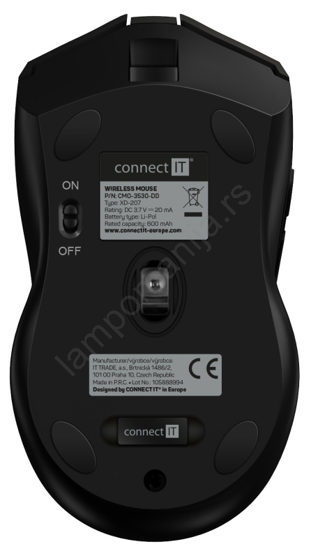 • Prekidač On/Off za potpuno isključivanje miša radi štednje baterije.