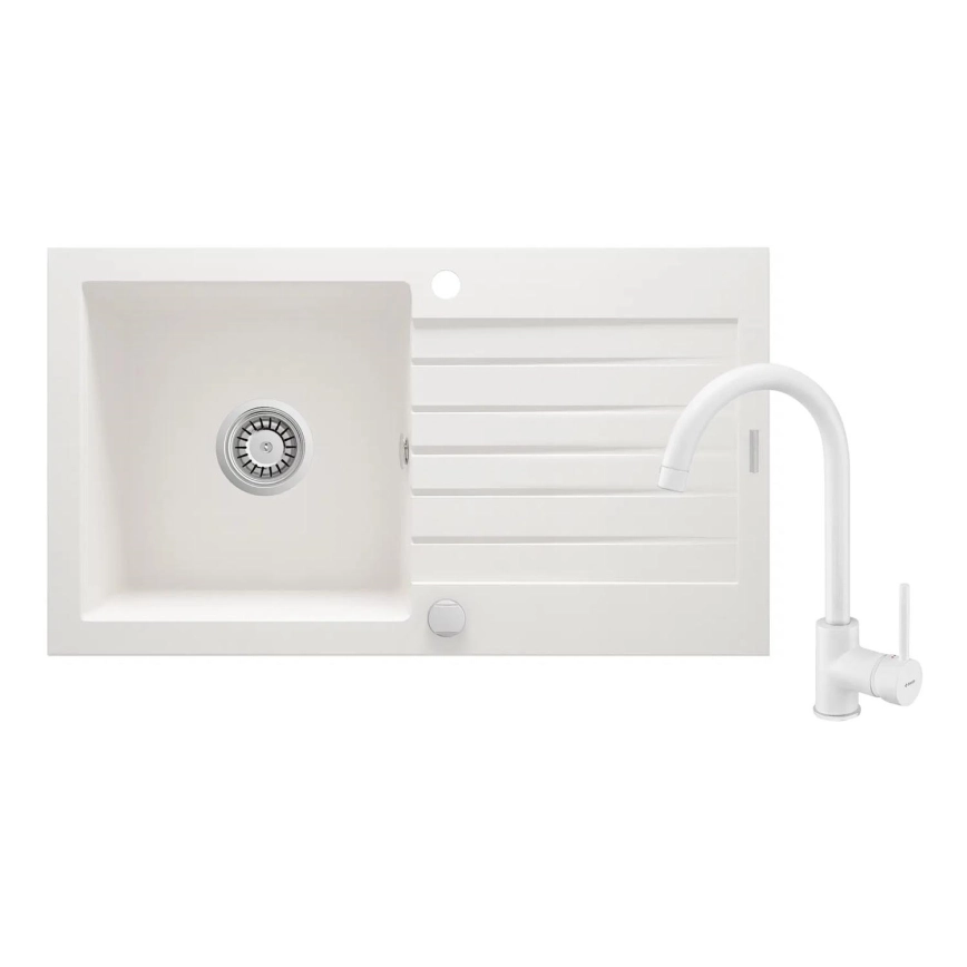 • Set granitnog sudopera sa kuhinjskom baterijom u boji alabaster.