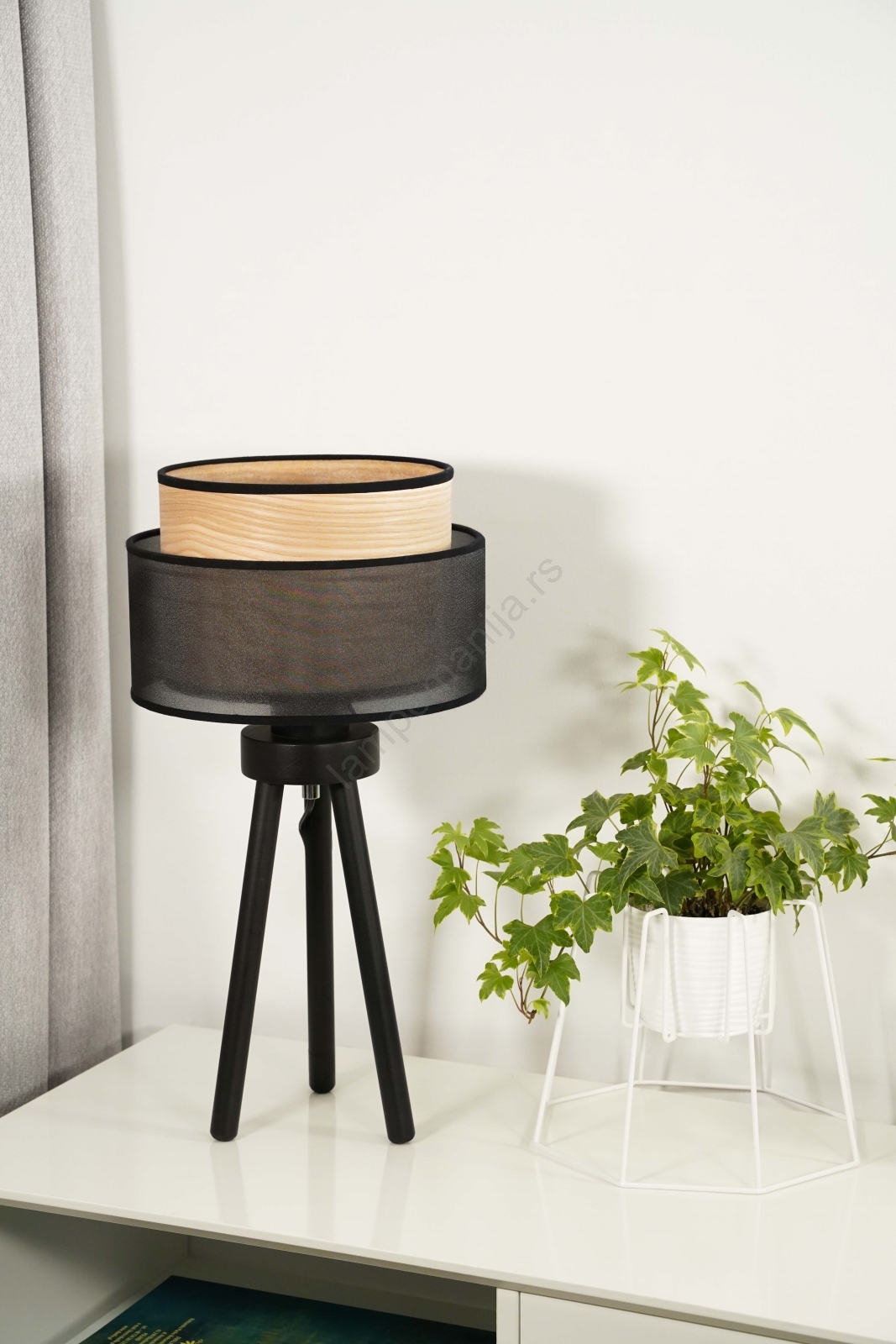 • Duolla - Stona lampa WOOD BOHO 1xE27/15W/230V, prečnik 25 cm, crna/bež