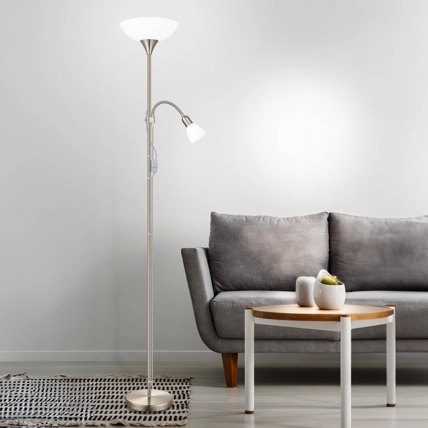 EGLO - Podna lampa 1xE27/60W + 1xE14/25W mat hrom