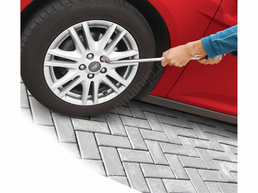 • Ključ završava 1/2" kvadratnim priključkom, uz mogućnost upotrebe dvostrane nasadne glavice veličine 17 mm ili 19 mm, koja je u pakovanju.