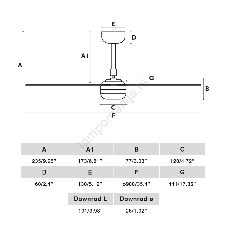 • Plafonski ventilator bez osvetljenja.