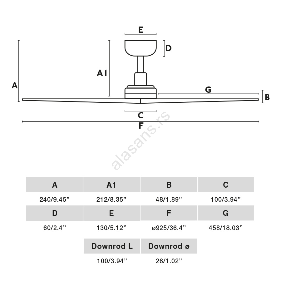 • Plafonski ventilator bez osvetljenja.