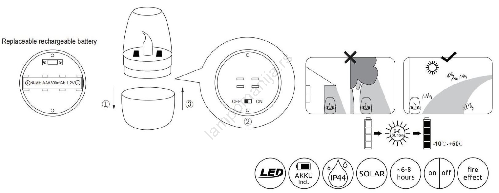 Globo - LED Solarno svetlo LED/0,02W/1,2V 1800K IP44 300 mAh