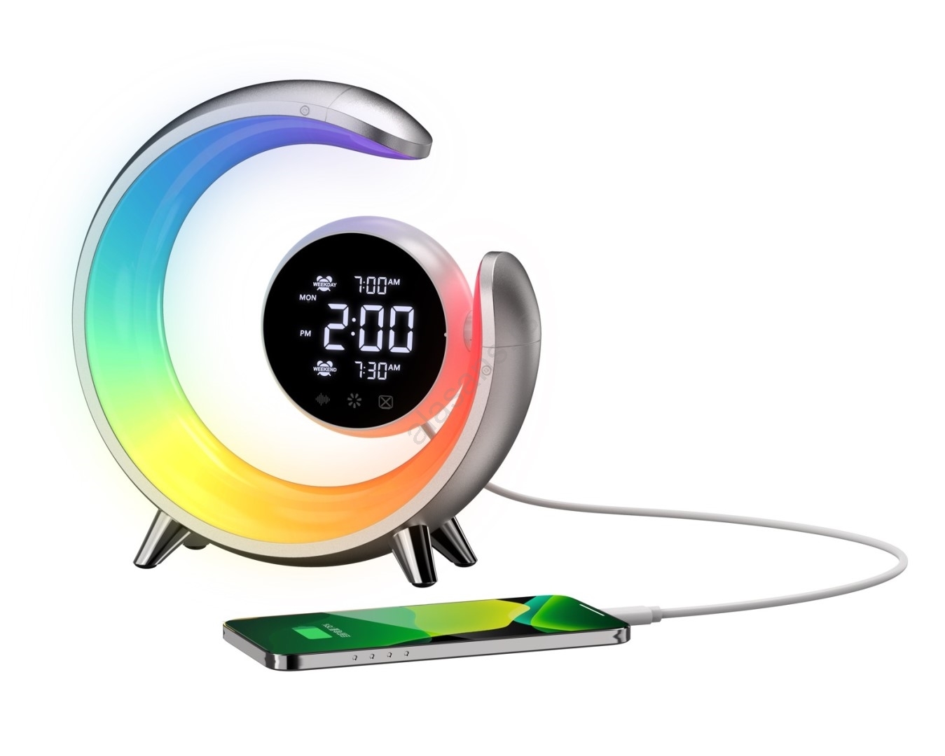 LED RGBW prigušiva stona lampa sa budilnikom LED/20W/5V USB srebrna