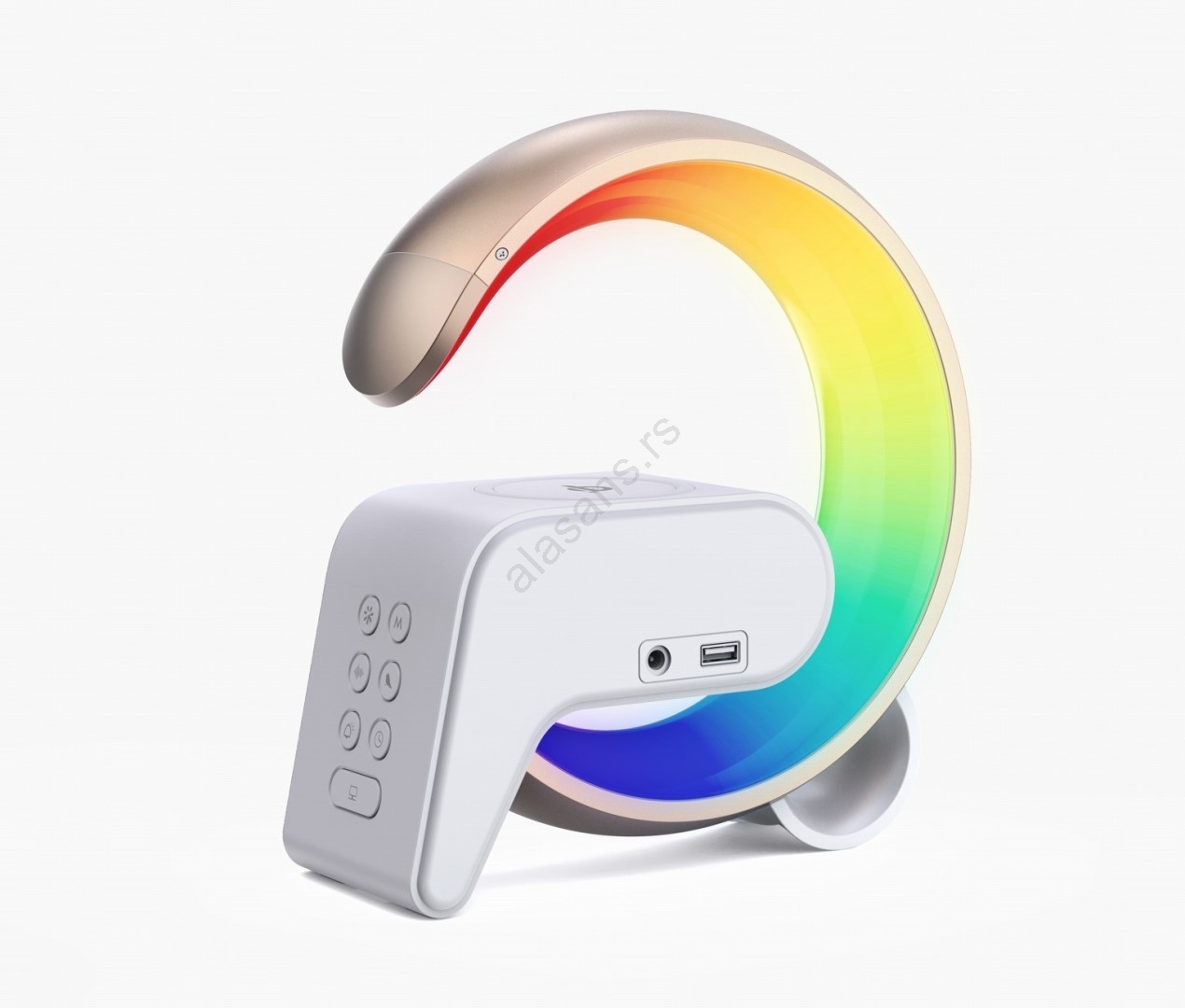 LED RGB prigušiva stona lampa sa budilnikom i Qi bežičnim punjenjem 30W/230V zlatna