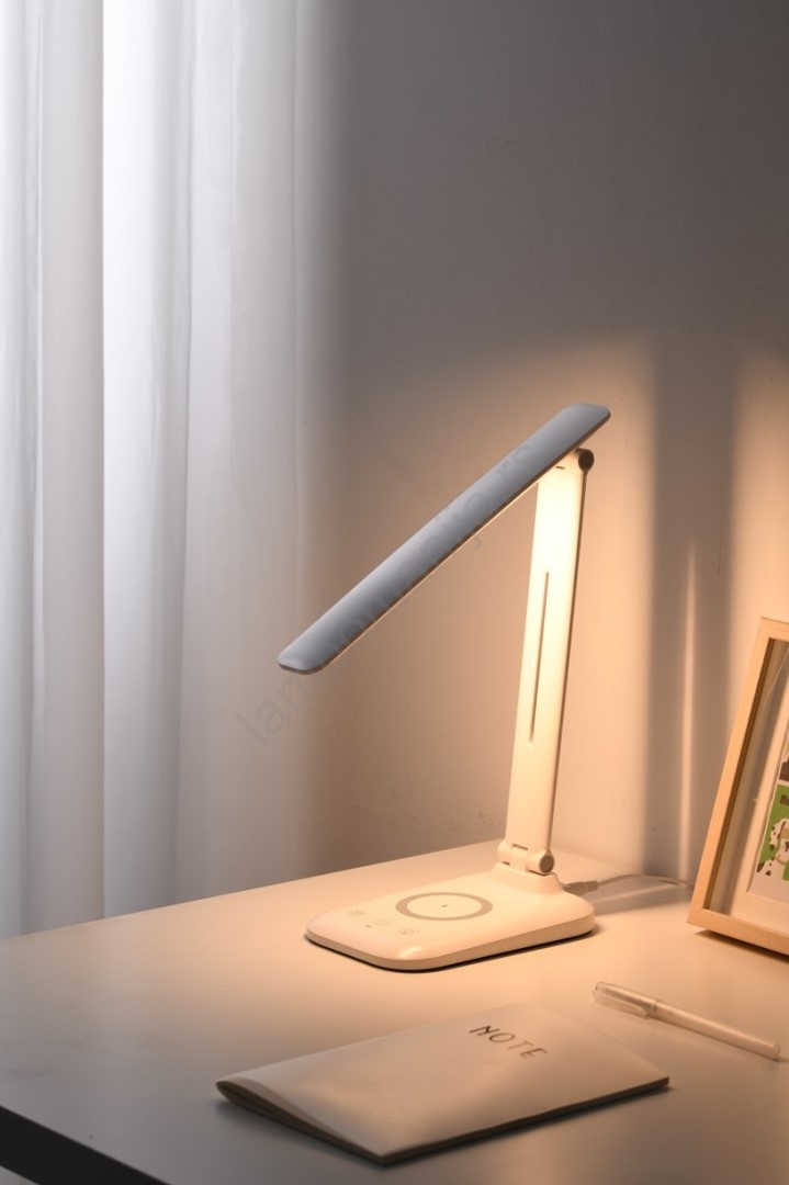 • LED stona lampa LUMI, prigušiva, sa bežičnim QI punjenjem i USB priključkom, 7W/230V, bela