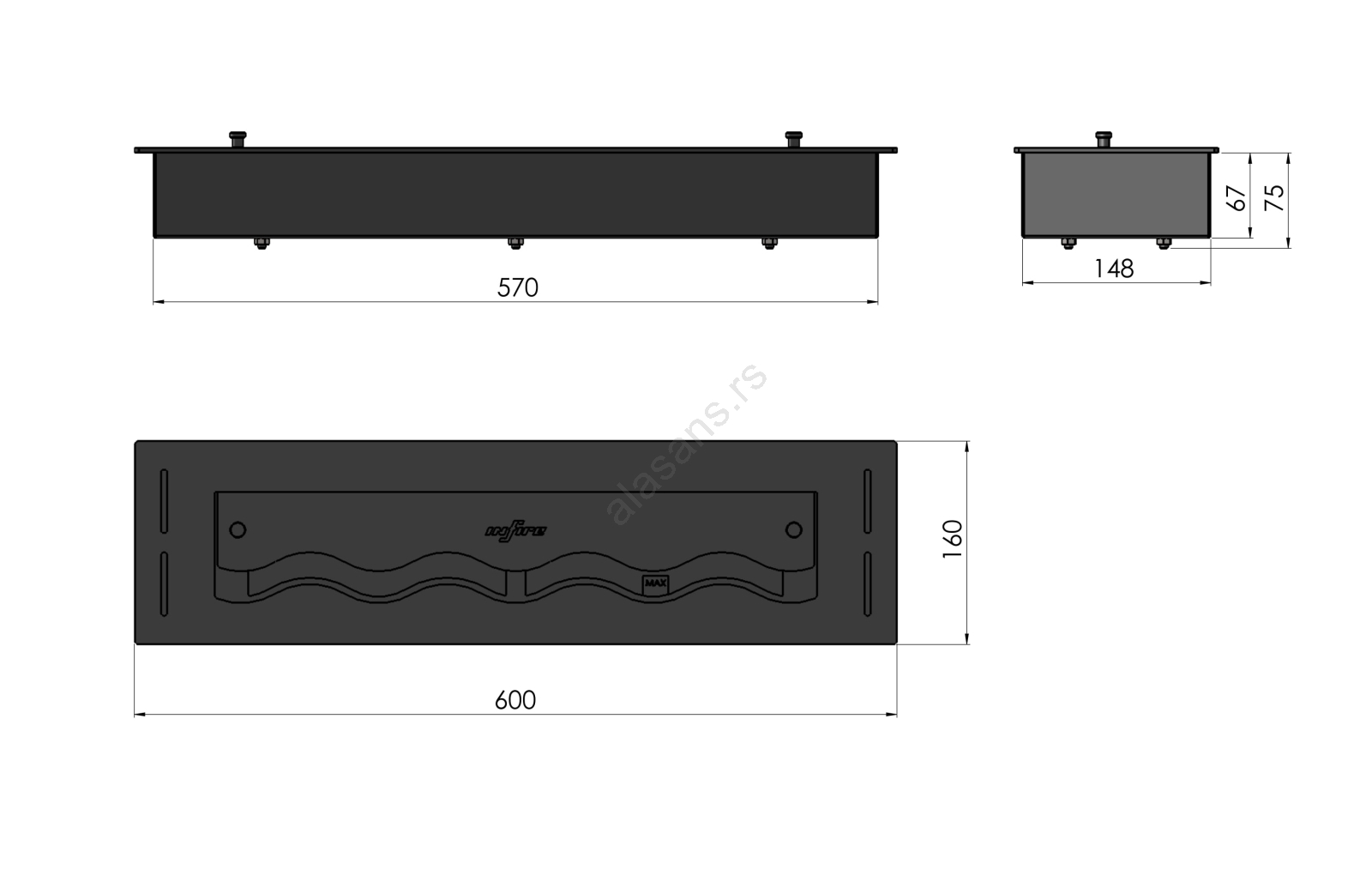 • Dimenzije kamina: 7,5 x 60 x 16 cm.