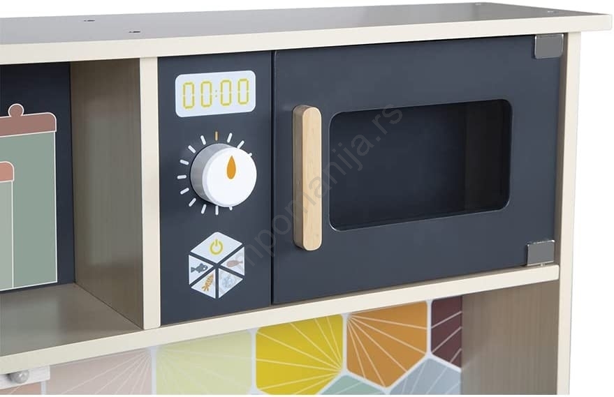 • Ova fantastična, potpuno opremljena kuhinjica ima i rernu, mikrotalasnu pećnicu, ormarić, 3 dugmeta sa zvučnim efektima, sudoperu od nerđajućeg čelika i sat.