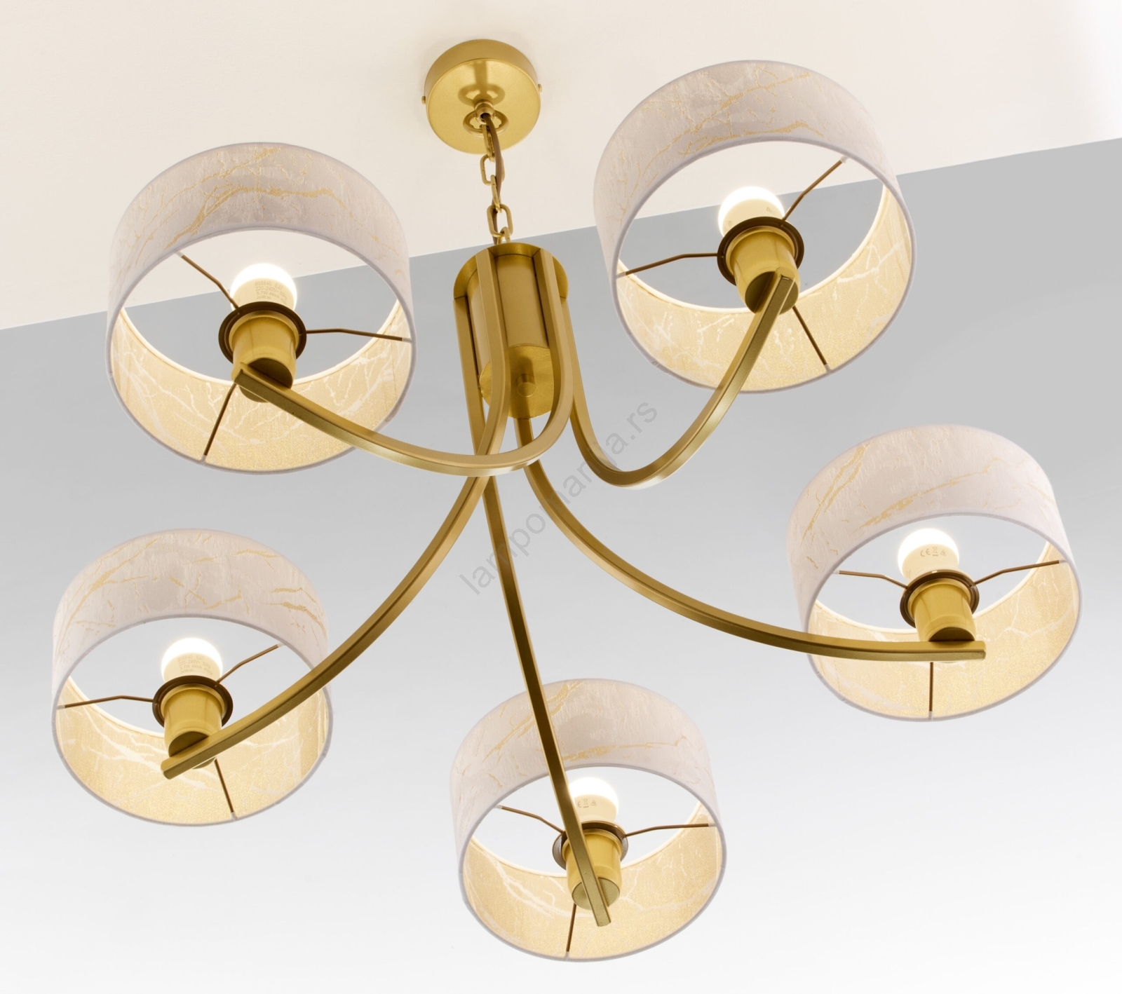 Jupiter 2097 - Luster na lancu ARTHUR 5xE27/15W/230V bela/zlatna/mramorni dekor