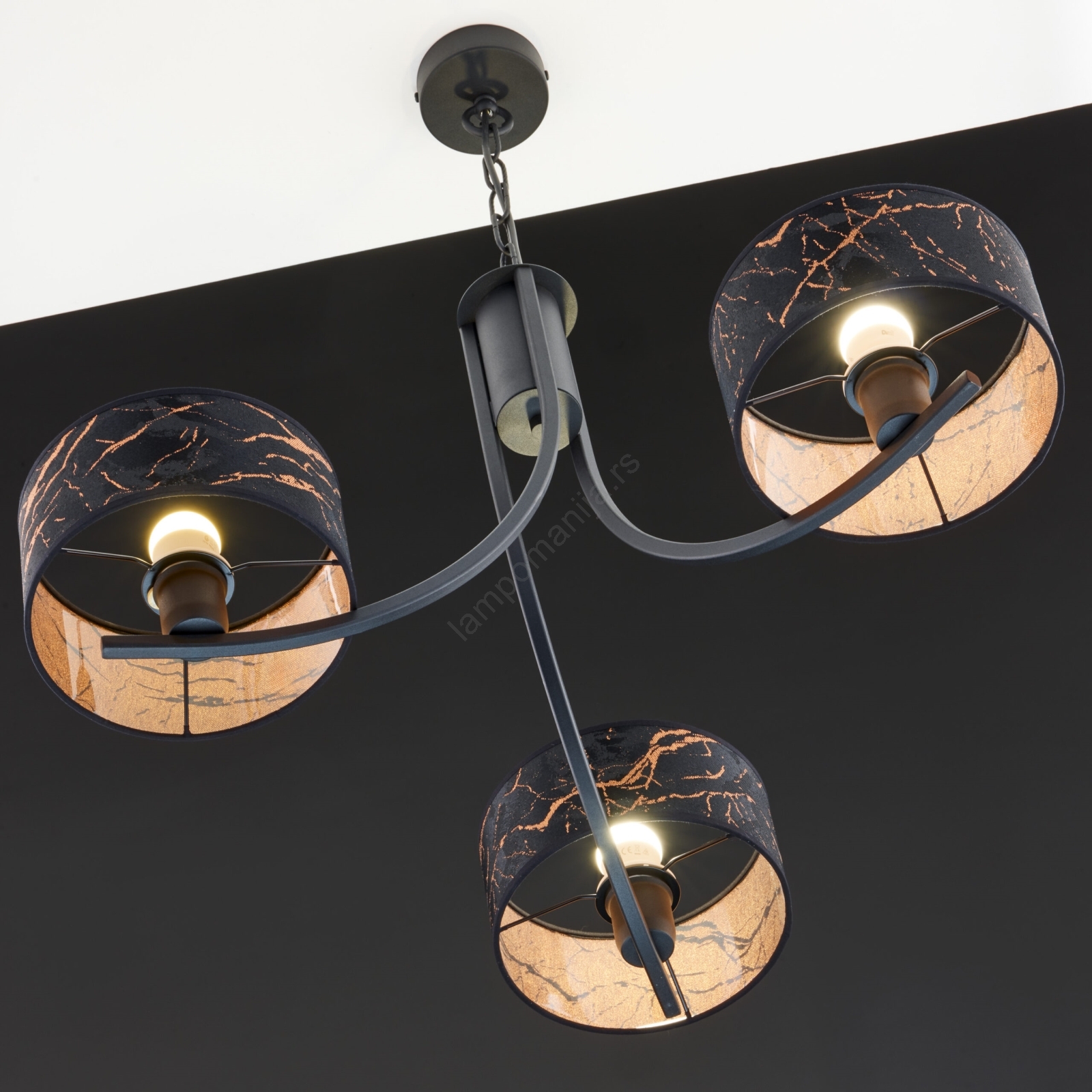 • Jupiter 2106 - Luster na lancu ARTHUR 3xE27/15W/230V crna/narandžasta/mramorni dekor