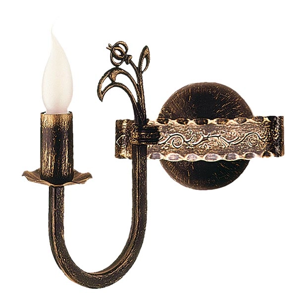 Zidno svetilo KOK - 1 - KORONA se izdvaja od drugih svetala jednom posebnom osobinom. To je ručno oslikana patina. Zahvaljujući tome svetilo dobija potpuno originalan i neobičan dizajn. Ovo rustično osvetljenje najčešće se postavlja u dnevni boravak, spavaću sobu, salon ili radnu sobu. Visina svetila iznosi 250 mm, a širina 240 mm. Sijalica nije uključena u isporuku.