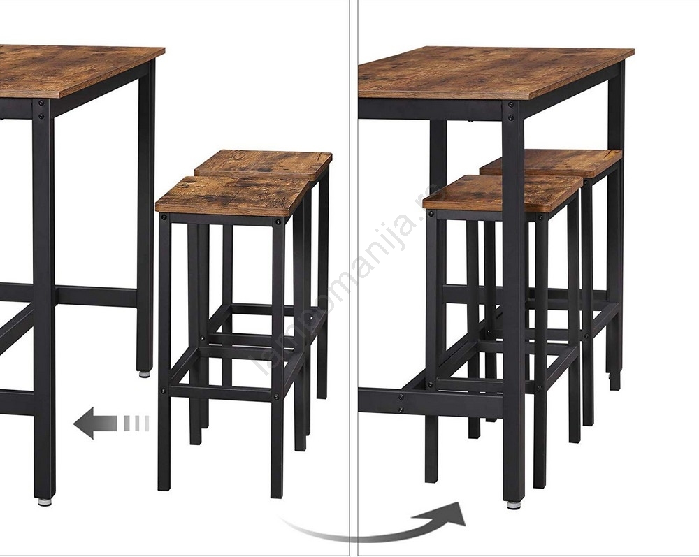 Komplet: barski sto i 2 barske stolice BARTIS, braon/crna