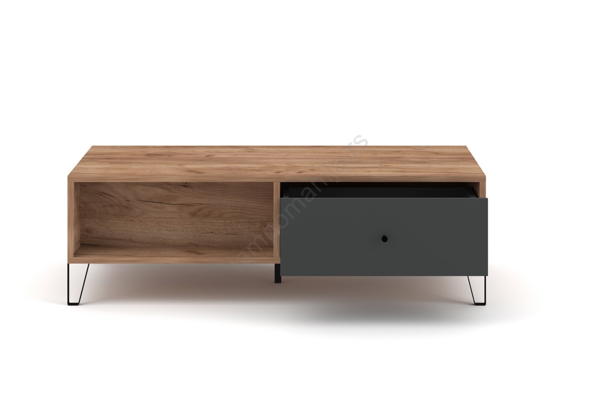 • Ima dve otvorene police i dve fioke ukrašene vertikalnim rebrastim detaljem za profinjen vizuelni efekat.