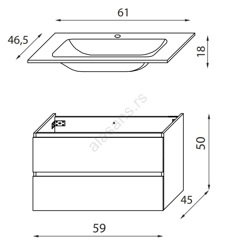 • Ovaj ormarić dolazi sa keramičkim umivaonikom.