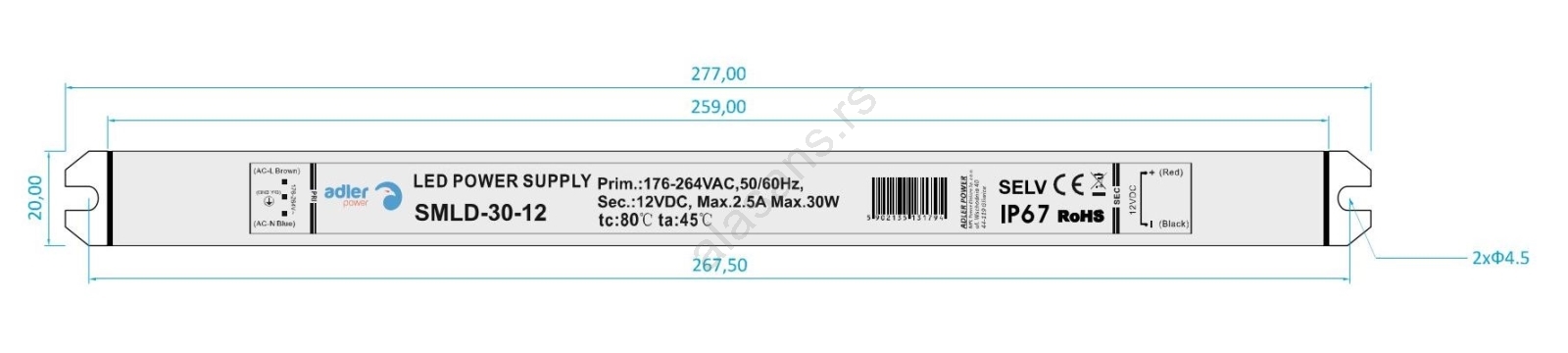 LED elektronski transformator (drajver) 30W/230V/12V IP67 | Lampomanija