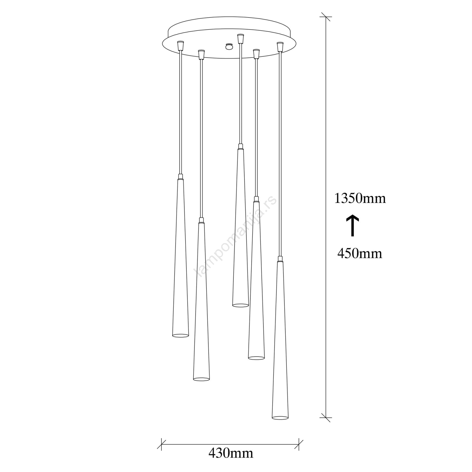 LED luster na sajli UGUR 5xLED/3W/230V