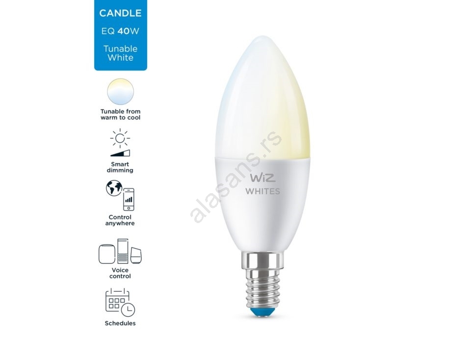 LED prigušiva sijalica C37 E14/4,9W/230V 2700-6500K CRI 90 Wi-Fi - WiZ | Lampomanija