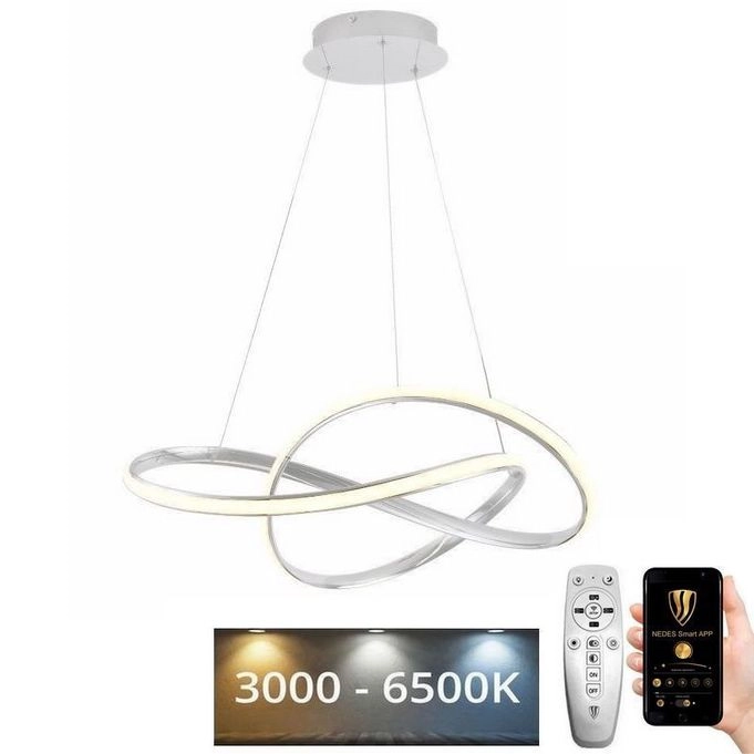 LED prigušiva viseći luster na sajli LED/70W/230V 3000-6500K prečnik 60 cm beo + daljinski upravljač
