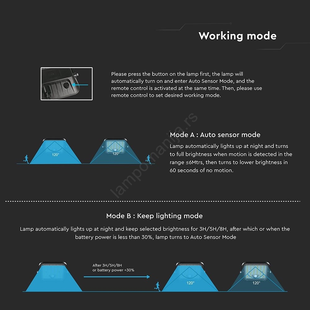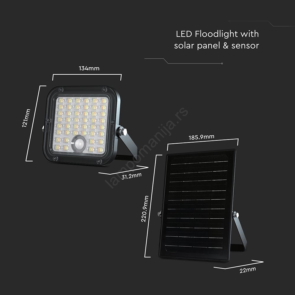LED prigušiva solarni reflektor sa senzorom LED/10W/3,7V 4000/6000K IP65 3600 mAh + daljinski upravljač