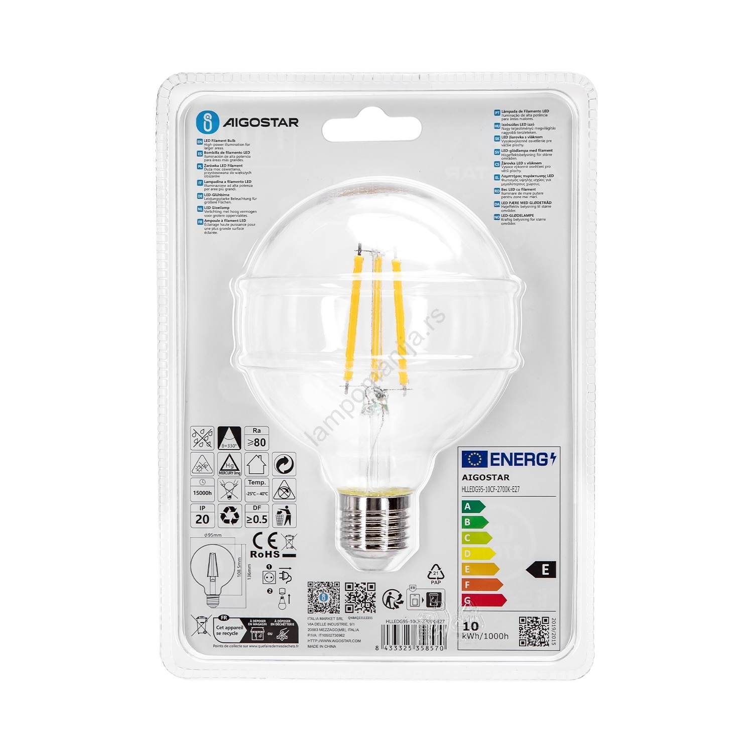 LED sijalica G95 E27/10W/230V 2700K - Aigostar