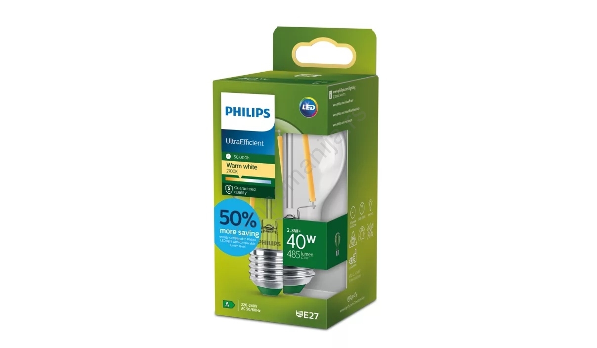 LED sijalica ULTRAEFFICIENT VINTAGE Philips A60 E27/2,3W/230V 2700K Kvalitetan dizajn osiguraće savršeno osvetljenje vašeg interijera. Kategorija E27 posvećena je sijalicama sa istim grlom. U našoj e-trgovini možete birati između sijalica sa klasičnom žarnom niti ili velikog broja modernih LED sijalica koje su energetski učinkovitije i imaju duži životni vek.