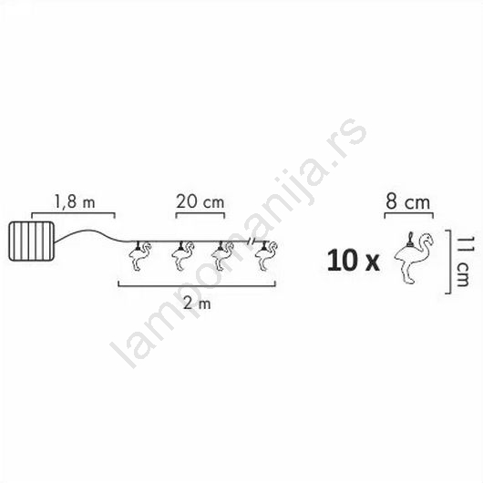 LED solarni dekorativni lanac 10xLED/1,2V 300 mAh 3,8 m IP44 flamingo