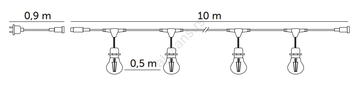 LED spoljašnji dekorativni niz BAJA ST64 20xE27/1W/230V 10,9m IP44 topla bela | Lampomanija
