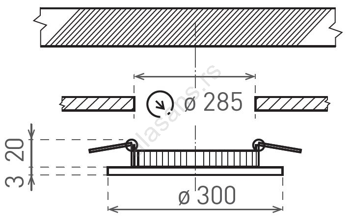• Svetiljka je opremljena oprugama za montažu koje omogućavaju jednostavnu instalaciju, na primer u gips-kartonu.