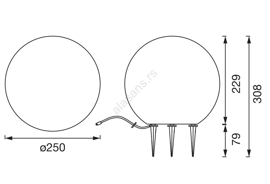 • Dužina priključnog kabla: 0,3 m.