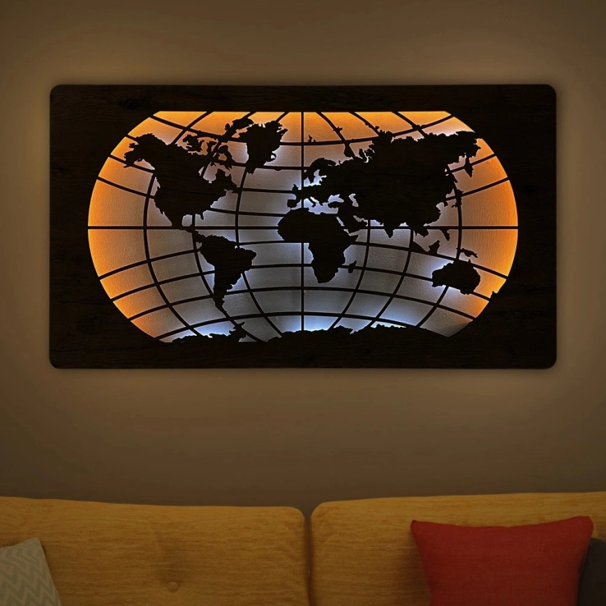 • LED dekorativna svetiljka sa motivom mape sveta.